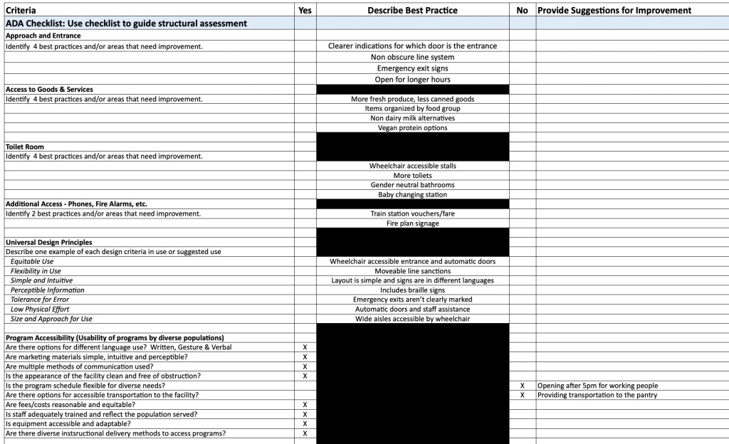 However, there are areas for improvement when it comes to accessibility. For example transportation barriers; with the building’s proximity to the train station they could provide transportation vouchers or shuttle services for clients who live farther away. Expanding to include evening hours would also better serve working people who don’t have time to go during the day.
